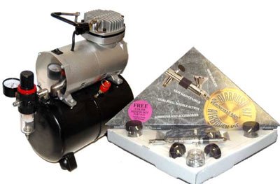 The Badger Model 360, "Universal®" is both a gravity and bottom feed dual-action, internal mix air brush. The Universal® is the only airbrush capable of performing in a gravity feed as well as a bottom feed mode. The Universal®'s precise single needle/tip/head assembly makes replacement of multiple parts a task of the past. The single size nozzle/needle is designed for spraying all materials, acrylics to watercolors, inks to lacquers and all of Badger airbrush-ready paints. Universal® 360-7 Complete Airbrush Set Includes: Badger 360 Universal® Airbrush with all purpose needle and nozzle. Braided air hose with varying air source fitting,3 Mixing jars, 2 Jar adaptors Trigger pad, Protective cap and Instruction manual Airbrush compressor TC 20T is designed to work only when you do. With this unique automatic on/off shutoff switch, it only operates when you are airbrushing. This "Air-On-Demand" feature allows the compressor to operate much cooler and avoid overheating problems that fr
